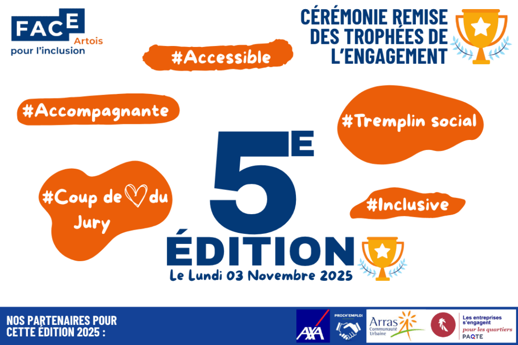 FACE Artois est une association reconnue d’intérêt général et agrée par la Fondation FACE, qui oeuvre depuis 2011 dans la lutte contre toutes formes d’exclusion, de discrimination et de pauvreté en mobilisant l’engagement des entreprises et de leurs collaborateurs elle met en oeuvre des projets en faveur de l’insertion et l’inclusion, de l’éducation et l’orientation contribuant ainsi à construire un monde plus juste plus durable et plus solidaire.