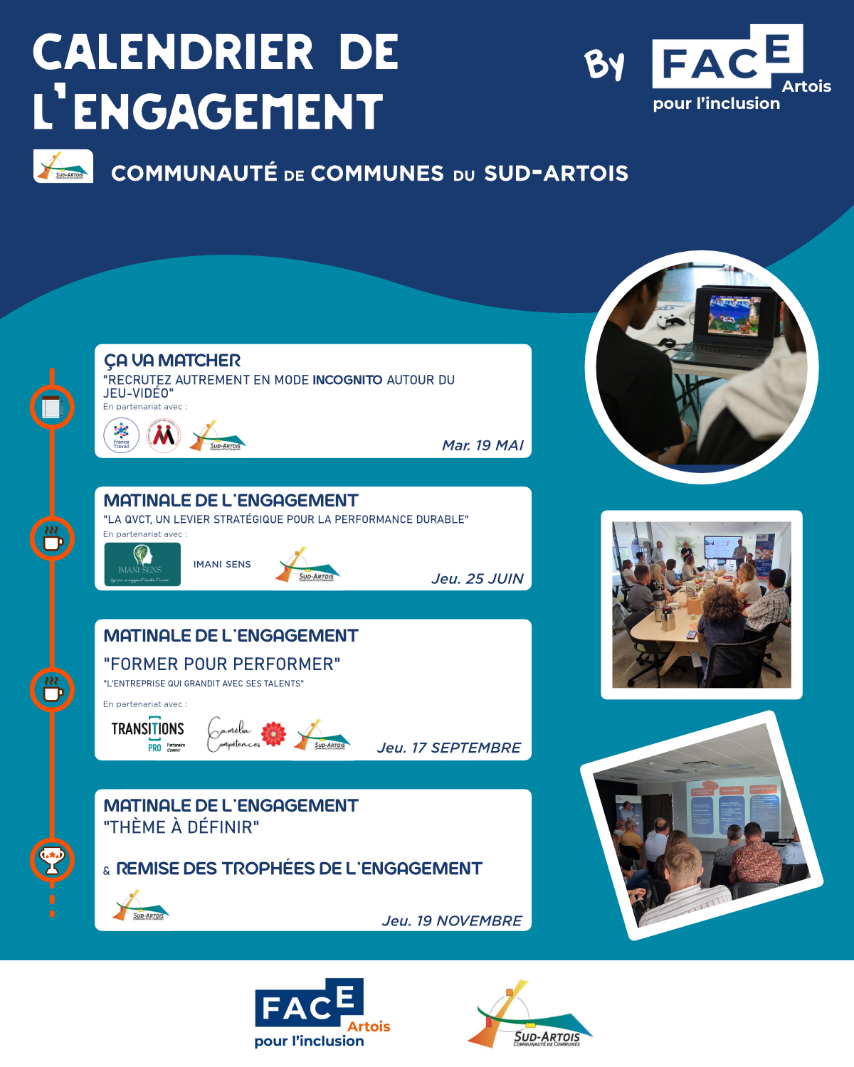 En partenariat avec la Communauté de Communes Sud-Artois, ce Calendrier de l’Engagement propose plusieurs temps forts pour favoriser les échanges, partager des pratiques et accompagner les entreprises dans leurs démarches d’impact social et territorial.