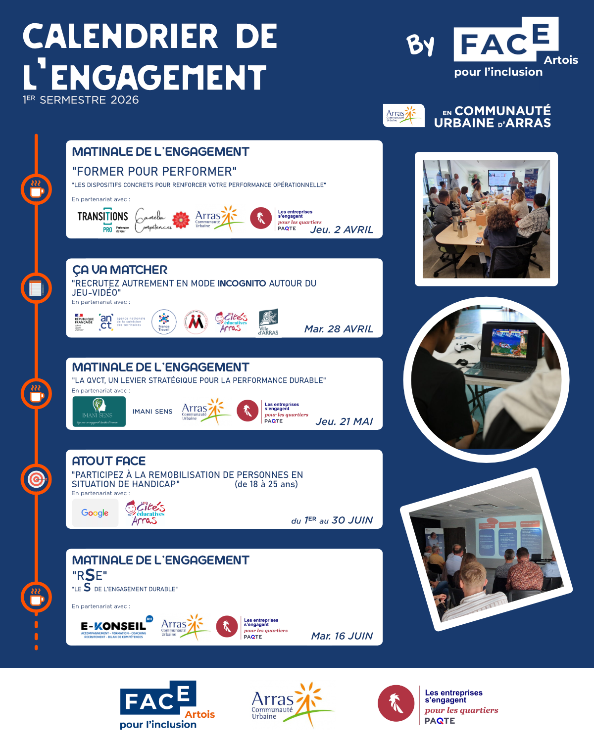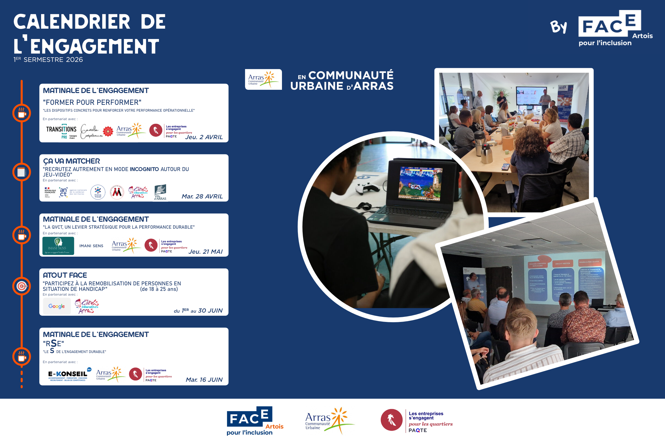 Ces rendez-vous sont organisés avec le soutien de nos partenaires institutionnels et économiques. Ils s’inscrivent pleinement dans la mission de FACE Artois : créer des passerelles entre entreprises et publics, favoriser l’inclusion et accompagner les organisations vers des pratiques plus responsables.
